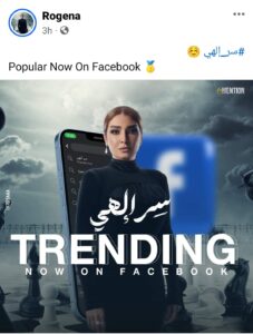 تصدر مسلسل “سر إلهي”، بطولة النجمة روجينا، وإخراج رؤوف عبد العزيز، تريند مواقع السوشيال ميديا، والأكثر بحثا على موقع التواصل الاجتماعي “فيسبوك” ،وذلك بعد طرح البرومو الرسمي للمسلسل، وكذلك الأغنية الدعائية للعمل، قبل بدء عرض أولى حلقاته.