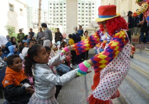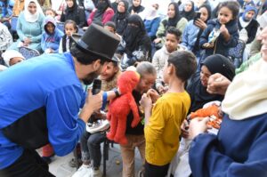 كذلك تفاعل الجمهور مع عرض فرقة الاراجوز من المركز القومى للطفل ، ووزعت مؤسسة مصر الخير الهدايا للأطفال المرضى بالمستشفى ، وفى نهاية اليوم صعد الفنانين لزيارة المرضى فى غرفهم وتوزيع الهدايا والتقاط الصور التذكارية .