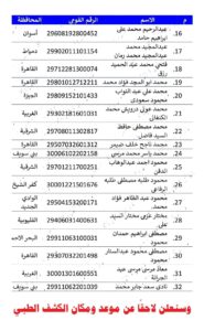 المرشحين للكشف الطبي للتعاقد على وظيفة إمام وخطيب ومدرس بوزارة الأوقاف ،من الأشخاص ذوي الهمم.