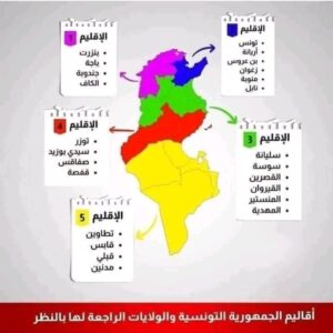 معاني أسماء ولايات تونس وعددها 2024 :وتنقسم الآن حسب التقسيم الجديد للبلاد التونسية إلى خمسة أقاليم