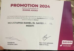 منحت جمعيّة المؤلّفين والملحنين وناشري الموسيقى الفرنسيّة “الساسيم” خطابات التهنئة للفنان مصطفى كامل، نقيب المهن الموسيقية، لإخطاره بإعتماده الرسمى ضمن محترفي العالم كشاعر وملحن مصري “العضوية البرفيشينال”، حيث تخطت أعماله الناجحة الأف وثلاثمائة أغنية .