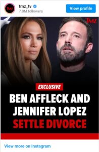 أنهى الثنائي الشهير جينيفر لوبيز وبن أفليك إجراءات الطلاق بشكل رسمي، بعد علاقة استمرت عقوداً تخللتها قصة حب مميزة وزواج دام عامين فقط. وقد تقدمت لوبيز بطلب الطلاق في أغسطس 2024، مشيرة إلى “اختلافات لا يمكن التوفيق بينها” كسبب للانفصال.